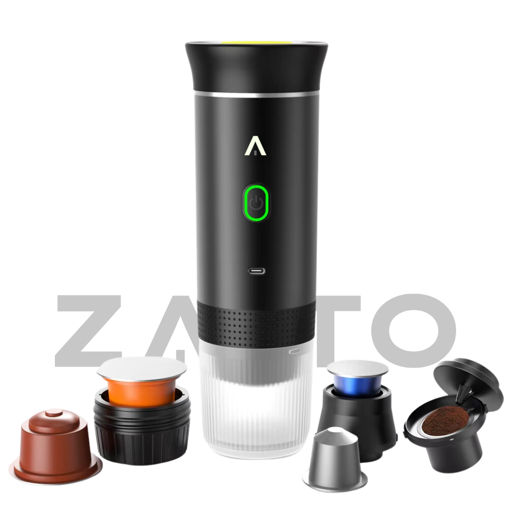 Prepara tu café favorito donde quieras con la Cafetera Portátil 3 en 1 Quick Coffee - Zatto. Con un diseño compacto y carga vía USB, te permite extraer café espresso a alta presión, usando café molido o cápsulas pequeñas y grandes (Nespresso o Dolce Gusto). ¡Ideal para viajes, trabajo, camping y uso diario!